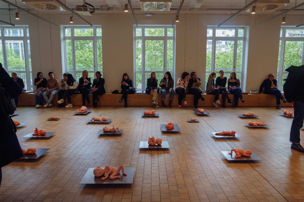 “World Bubble” is about care and attention, about the newborn infant struggling to adapt to life outside their mother’s womb. More broadly, it evokes how harsh and unpredictable life and the age we live in can be. Fog explores the beings we become in adversity, how we relate to our emotions and sensations, and what role art truly plays in terms of creation and feelings. Despite being rooted in the artist’s own physical and emotional experiences, Nour Fog’s artworks have a universal dimension that leaves room for viewers to project their own stories into them.