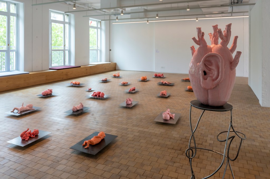 Fog is interested in the “French connection” and the image of Paris. Rather, they have drawn on materiality – materials and references found in Paris – for some of the energy that has nurtured the exhibition. Louise Bourgeois is one of Nour Fog’s great models and a major source of inspiration for them. Her sculptural works and in particular her talent for depicting the violent and the intimate are aspects Nour Fog attempts to incorporate into their own practice. Nour also appreciates Jean Arp’s sober, corporeal visual language and Claude Cahun’s play on and explorations of the body, gender and identity. At the same time as being nurtured by these numerous French references, Fog’s artworks set out to open up new ways of working with ceramics by experimenting with formats, construction, assemblages of materials and installation.