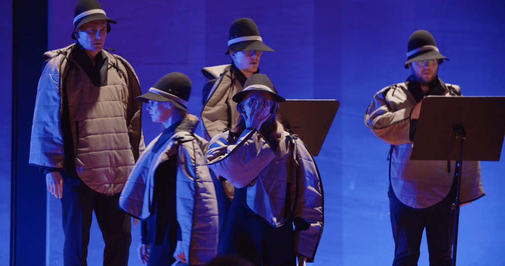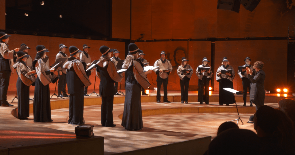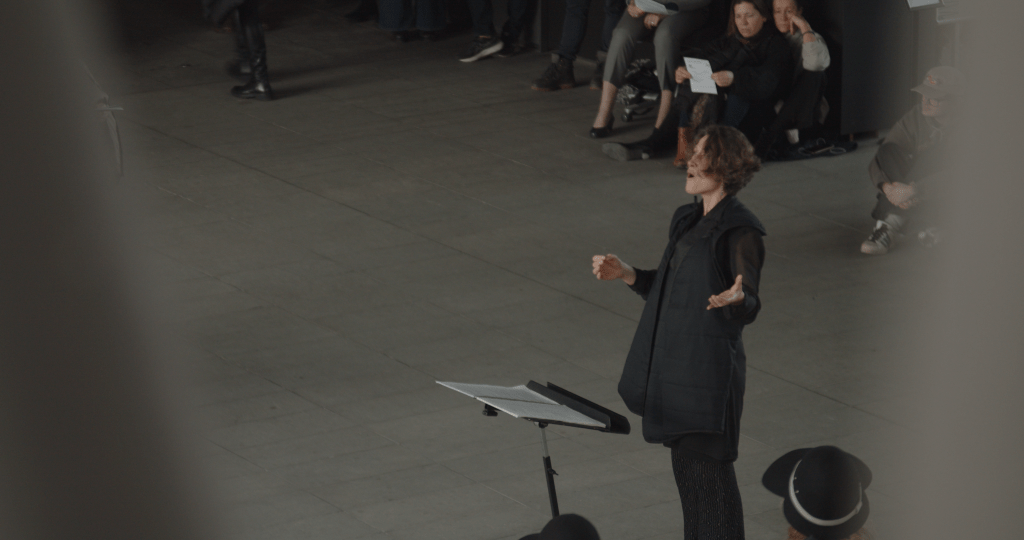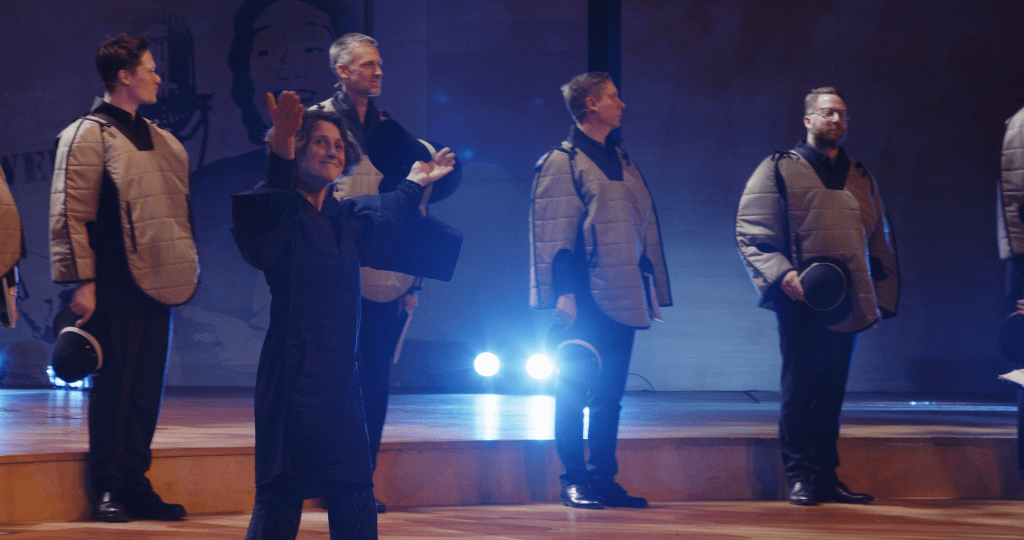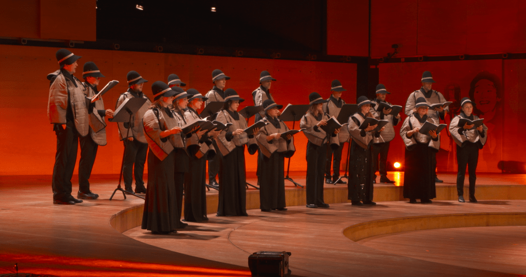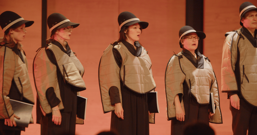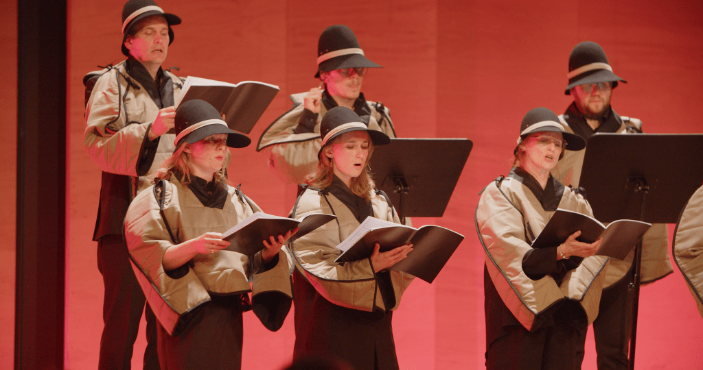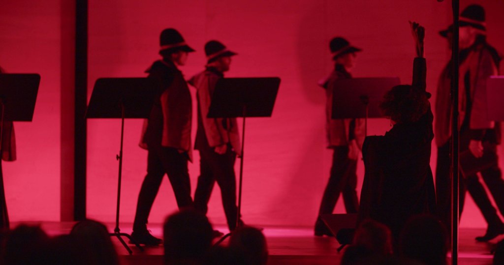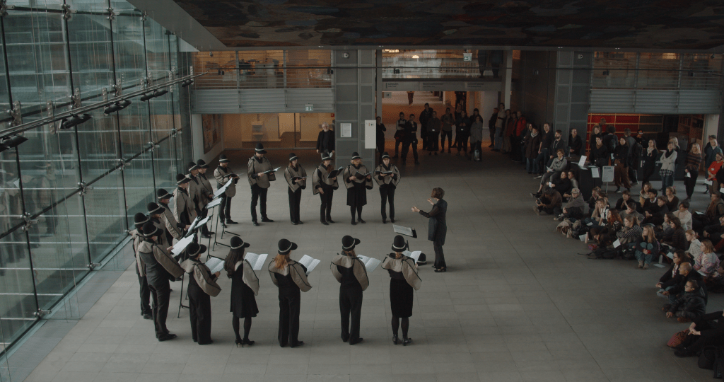 “The Calls” was commissioned and co-produced with Danish composer Niels Rosing-Schow and ultidisciplinary Chicago based artist Brendan Fernandes, Danish Radio and Vokalensemble (18 voices) of the National Radio of Denmark. The piece incorporates a live and recorded performance of a new sonic composition and choreography for The Vokalensemble. The Vokalensemble sing sounds of police sirens, the sea, and words that touch on the unprecedented moment of pandemic and protest we are living through. By becoming “sirens”—in the Greek mythological sense—the performers enact the motive behind this work: a collective call to change course.